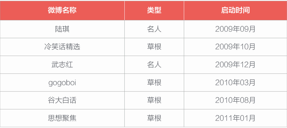 在选择观察微博的样本时,我们排除了例如姚晨、TFBOYS、吴亦凡、鹿晗等“超级大V”(他们的兴起主要受益于平台外自身的知名度),而关注那些主要从平台窗口期获得红利的大号,可以观察到:这些帐号多于2009年底-2010年之间,大约也是24个月的时间——规律总会复制自身。