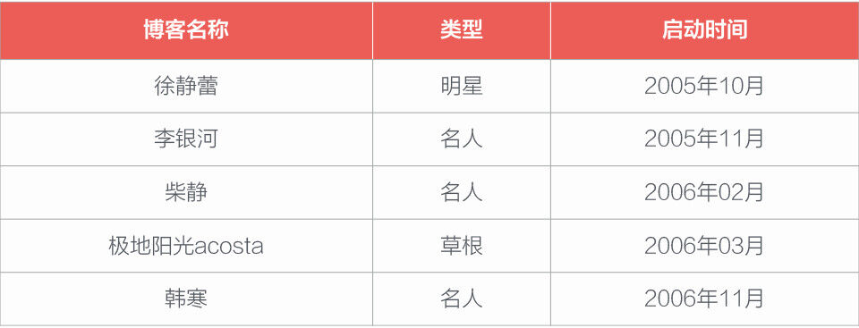 以上几个国民级博客样本,无一例外都在2005年底-2006年间开通新浪博客的,可以推论,这个时间段就是博客作为内容平台的红利窗口期,原因有二: