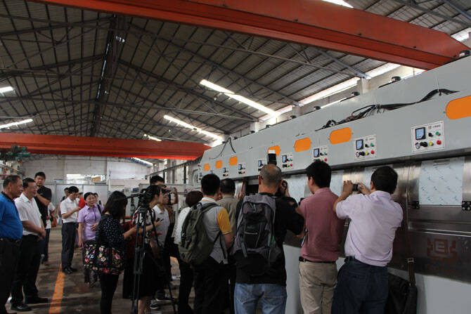 在一鼎科技的会议室进行会谈时,为了节省时间,一鼎科技方面不作任何塞暄,甚至连嘉宾介绍的环节都省去了,冯竞浩直奔主题,向调研组介绍起了一鼎科技的相关情况。据冯竞浩介绍,一鼎科技2015年相比2014年增长30%,他称逆市增长首先靠单机新产品的推出,其次是从单机新产品到新型窑后整线转型发挥了重要作用,而适应市场需求,围绕节能、智能两个大方向进行创新也是一个重要原因。在冯竞浩看来,创新发挥的作用一是增强企业核心竞争力,二是为客户创造价值。