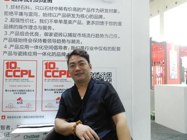 据了解,今年春节后正式运营的御家瓷砖,其实目前还在试营业,尚未正式开业,但已经有了70多家经销商。其产品以全抛釉为主(销售占比达95%),另有彩晶、微晶。王宏伟表示,御家瓷砖的全抛釉都是独立自主研发的,花色特性区别于其他任何品牌。对于参展,王宏伟认为,这对品牌传播、招商都起了一定作用,所以今年的秋季陶博会御家瓷砖还会参加,而御家瓷砖今年的工作重点则是开发经销商。