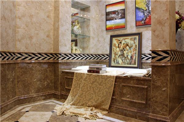 据了解,新推出的御家瓷砖55°柔光大理石瓷砖有三大亮点,如柔光砖的表面效果柔和,感觉更舒适,它还原石材表面约55°自然光泽(天然大理石的光泽度为50°至60°),石材效果更逼真,人在这种环境下也会更加放松。此外,汇集行业顶级制造工艺的柔光砖保留了天然大理石般的裂纹,并且在纹理、色彩、质感、触感等方面完全达到了天然大理石的逼真效果。配套产品齐全,为顾客提供一站式服务,这也是御家瓷砖55°柔光大理石瓷砖的一大亮点。据王宏伟介绍,御家55°柔光大理石瓷砖的配套产品齐全,该产品将重点在打造“空间化”方面继续延伸,把围绕主砖的拼花、线条、波打线……都相应配套起来。