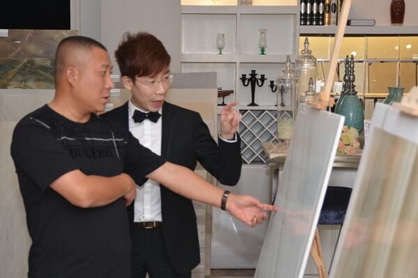 此次新推的数十款产品中,杨宏波主要向其介绍了“雨林白”、“灰金沙”、“贝纹啡”三大产品:“它们都是独一无二的,每片砖都不一样,纹理夸张而又细腻,不管工程家装都适用,可谓前无古人后无来者。‘直纹灰’多用在五星级酒店素雅的地方,直铺斜铺效果都非常好;而‘贝纹啡’是国内所没有的,源自土耳其珍贵石材,所以在国外知名度要高很多。” 对此, 作为全国最大的陶瓷代理商,单品牌年销量逾两亿的李宏伟深表认同。他调侃道,在杨宏波眼里,只有车子和瓷砖能让他滔滔不绝。但这一点,却印证了“只有好的产品才能吸引消费者,才能有市场”的言论。