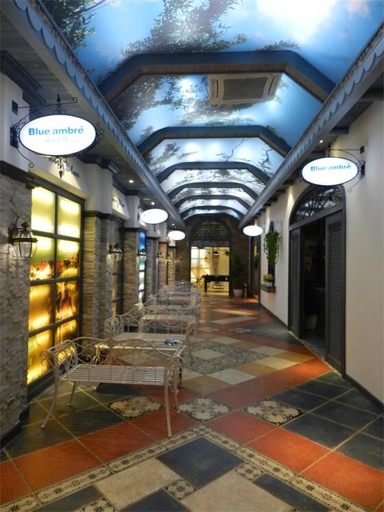 图为蓝珀瓷砖展厅内的法式走廊