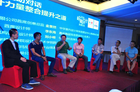 在互动对话环节中,由刘小明主持,黄治奇、朱丙华、刘昆、吴兆奇、李东海、漆晶晶多位嘉宾应邀上台就珠海设计力量整合提升之道这一主题进行了激烈的讨论,嘉宾们各抒己见,为在场的设计师带来了一场多种观点碰撞的思想盛宴。