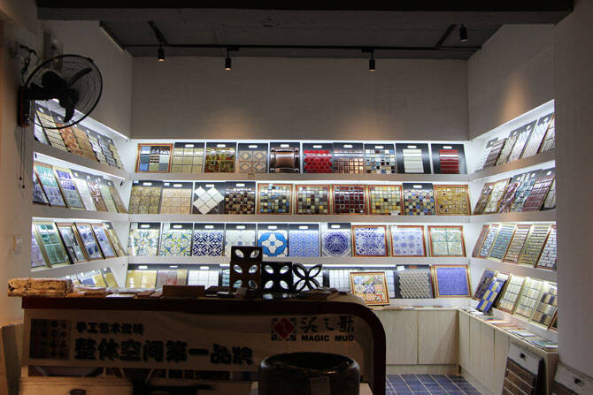 据介绍,“老泥猴”的手工砖产品是按设计风格、釉色划分,共有八九个系列,规格最小的如马赛克,规格大的有300mm×300mm,特别定制的可以达到500mm×500mm乃至更大规格。袁智告诉记者,该品牌的产品分半手工和纯手工两种大类(两类产品各占一半的份额),其中半手工为机械压模、手工喷釉、手工烧制,纯手工则是手工制坯、手工喷釉、手工烧制,其中特别的产品(如“东方神韵”)还需要柴烧。