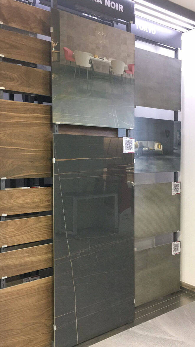 非常有意思的是,ICC瓷砖展厅重装后推出的新品,与汉贝托发布的国际瓷砖流行趋势非常吻合,例如新品大多是大规格,其中云海的规格是800mm×1800mm,台北的规格有600mm×1200mm、900mm×1800mm,冰雪奇缘的规格是900mm×1800mm,森林之星的规格是200mm×1800mm,诺亚原石的规格是900mm×1800mm,洛基云影的规格是600mm×1200mm,黑骑士的规格是900mm×1800mm。3D墙砖大规格在ICC瓷砖也得到了验证,如安第斯的规格是400mm×1200mm。