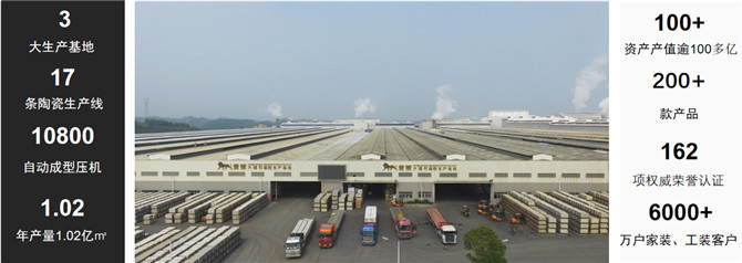 壹號拥有国内一流的生产制造实力,17条现代化生产线,年产量1.02亿平方,产值50亿元。公司三大生产基地分别坐落于清远禾云镇和佛山白坭镇,总占地面积约150万m²。拥有17条建筑陶瓷生产线,配备400多米超长宽体窑炉、10800吨意大利萨克米压机、西斯特姆十二通道喷墨打印机等国际先进设备,建筑陶瓷年产量在行业前列。强大的制造实力,成就多品类、多规格产品,可以满足各类家装及工程用户个性化需求。