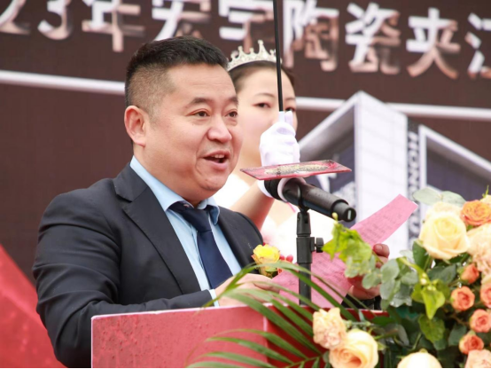 夹江宏宇陶瓷旗舰店总经理卢翔介绍了广东宏宇陶瓷控股有限公司销售顾问霍兆强、中国建筑卫生陶瓷协会副会长/西部瓷都陶瓷协会会长胡正华、宏宇品牌事业部综合南区销售副总经理罗一辉、西部瓷都陶瓷协会秘书长宁安全等一众行业权威人士,共同出席活动,一同见证潮流推新,创新素奢美学新未来。