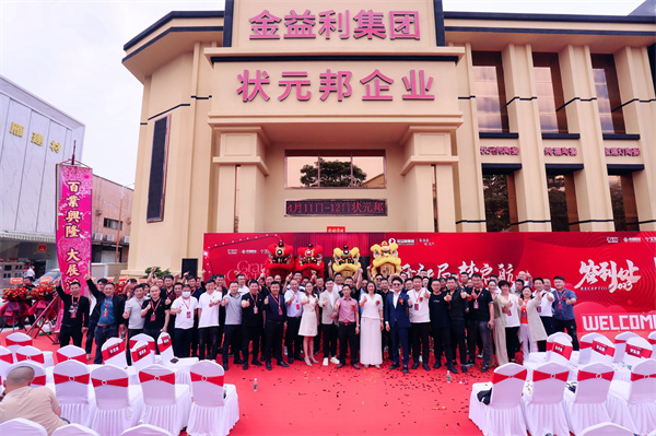 4月12日上午,开业庆典上状元邦企业的领导及客户朋友们齐聚现场,共享盛会!金益利集团董事长潘润锡在致辞中强调,新展厅的开业是状元邦企业拓局之路的第一步,更是旗下品牌进阶升级的一大步,是企业前进道路的新起点!同时潘董表示此次展厅焕新升级,提振市场与经销商的信心,将持续强化核心竞争力,以高质量供给引领创造消费增量,同时还对状元邦全体寄予了新希望“全体员工坚定信心,为企业发展共同赋能!”