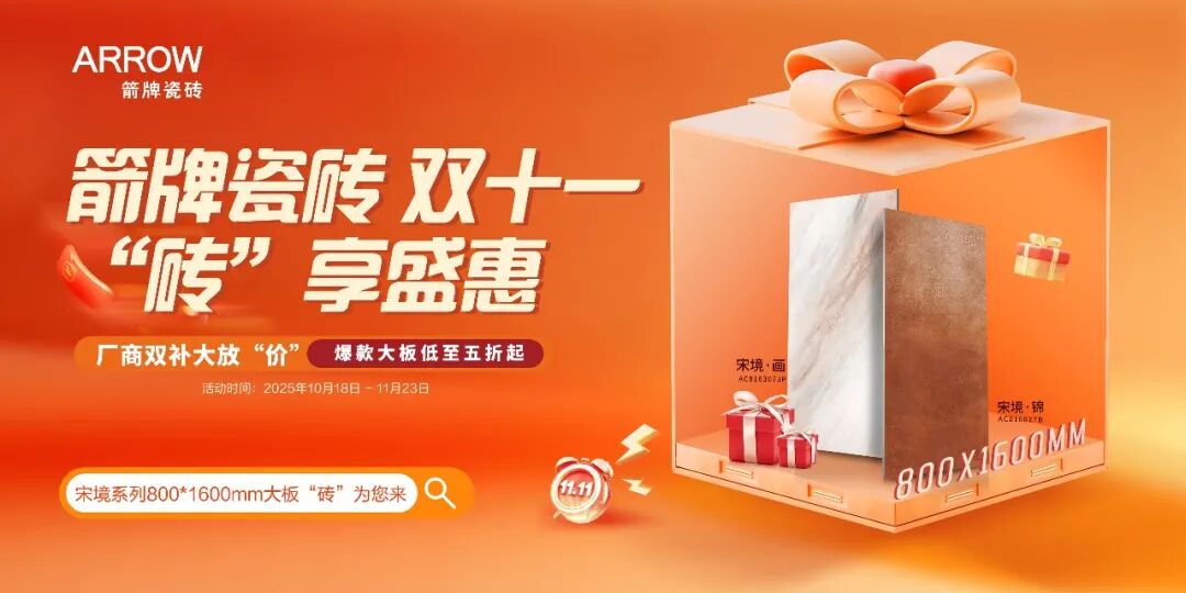 恰逢箭牌瓷砖双十一活动,厂商双补大放“价”,爆款大板低至五折起,多重优惠福利助你焕新家,“好房子”建设不容错过好时机!