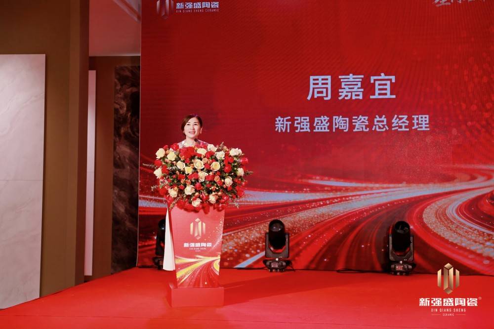 新强盛陶瓷总经理周嘉宜则聚焦品牌落地与厂商共赢,分享了团队的行动纲领。她表示,新强盛陶瓷的诞生,源于对当代家居需求变迁的深入洞察,人们不再仅仅满足于功能与耐用,更追求空间的情感共鸣、美学的高级感和身心的疗愈。为此,品牌团队将从品质守护、全链路赋能、长期同行三个维度,为经销商伙伴提供全方位支持,真正实现厂商同心、共创未来。