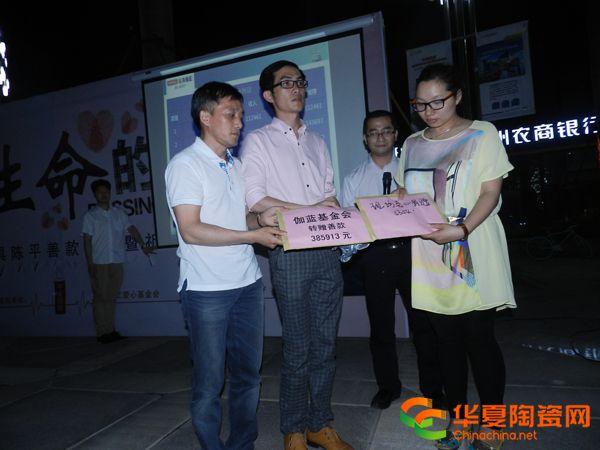 华夏陶瓷网讯(首席记者 申志) 一方有难,八方支援。4月2日晚20时,佛山市伽蓝洁具有限公司(以下简称“伽蓝洁具”)在智慧新城为日前遭遇车祸的员工陈平举行祈福会,200多人参加了本次活动。当晚,伽蓝员工爱心基金会负责人现场转赠陈平家人善款28万多元,此外,佛山市卫浴洁具协会代表刘文贵现场转赠陈平家人善款5万多元,陈平家人现场共接受善款约33万元。 据介绍,伽蓝洁具员工陈平是一个多才多艺并且热心助人的人,不幸于今年3月20日晚在高明大桥附近遭遇车祸,身负重伤的他至今仍处于昏迷状态。为了让陈平早日康复,伽蓝洁具员工自发捐款38万多元,在支付了陈平的前期治疗费用后,尚结存28万多元,结存款项于4月2日晚由伽蓝员工爱心基金会负责人现场转赠陈平的弟弟陈森,用于陈平的治疗。而佛山市卫浴洁具行业协会代表刘文贵当晚亦向陈森转赠协会成员捐款5万多元。 活动开始后,伽蓝洁具员工首先演唱了《我们都是伽蓝人》这首歌。据介绍,这首歌是由陈平本人创作。现场发言的伽蓝洁具代表将陈平描述为一个多才多艺、认真负责、尊老爱幼、热心助人的人。 陈平的弟弟陈森在介绍陈平的病情时,一度哽咽至失声。他告诉大家,出事13天后,陈平仍然处于昏迷状态,何时能醒来过程“比较漫长”。 对于陈平的不幸遭遇,各界人士都伸出了自己的援助之手,如佛山市卫浴洁具协会、陶瓷资讯、中洁网等单位纷纷为陈平捐款,而心海伽蓝洁具则为陈平募集了38万多元善款,为原本经济并不宽裕的陈家雪中送炭。佛山市卫浴洁具协会秘书长刘文贵、中洁网副总经理李天燕、伽蓝洁具总经理张爱民,都在现场为陈平送出祝福,其中李天燕、张爱民更是追忆起与陈平交往的经历。因事未能亲自到场的陶瓷资讯社长喻镇荣,亦通过视频的方式表达对陈平的祝愿。 当晚活动现场摆出了一个心形的蜡烛圈,象征着众人对陈平的祈福。在活动过程中,到场人士曾集体合掌向着蜡烛圈连呼三声“陈平,加油”。在活动结束时,现场人士更手拉手绕圈为陈平祈福,气氛相当感人,记者注意到多人泪洒现场。此外,记者还注意到,多家行业媒体派代表参加了当晚的活动。