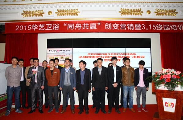 华夏陶瓷网讯 早春三月的9号,南国乍暖还寒,在中部城市长沙,年味尚未褪尽,湖南华艺办事处已吹响315大型促销的集结号!湖南区域160余华艺卫浴新老客户共聚长沙新海悦大酒店,举行主题为“同舟共赢”创变营销暨315终端培训会议。华艺卫浴营销总顾问、中装动力机构姜勇刚老师、华艺总部销售部经理杨仪练先生、湖南办事处总经理李志为出席本次会议。接近尾声的315订货环节将会议气氛推向顶峰,据发稿前统计,订货总额达1046万元,签约新客户8家,甚至有路过宾馆的建材从业人士恰逢其会,马上签约,本次订货会的成功充分体现了华艺卫浴势头正健、来势凶猛。