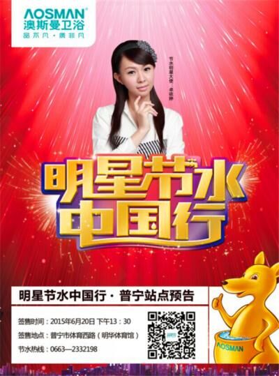 华夏陶瓷网讯 澳斯曼卫浴“明星节水中国行”将于6月20日在普宁市体育西路明华体育馆举办主题为“向幸福出发”的明星签售活动。为致最大诚意,即日起,澳斯曼卫浴与你约法三章回馈普宁市民。