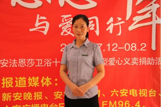 这次活动之所以会有这么大的优惠力度,主要是我们六安法恩莎卫浴今年已经是第十年了,在这十年里,品牌能在六安市场走到今天这样的知名度着实不容易,所以吴总也想着借这次活动回馈我们的新老客户,同时能将这次活动做得更有意义。我们这次活动只要你花30元购买爱心捐助卡,我们会再出30,然后以顾客的名义捐出去,购买卫浴等于参加了一次慈善活动。这样的方式能让大家都参与到慈善活动中,让慈善就在身边。