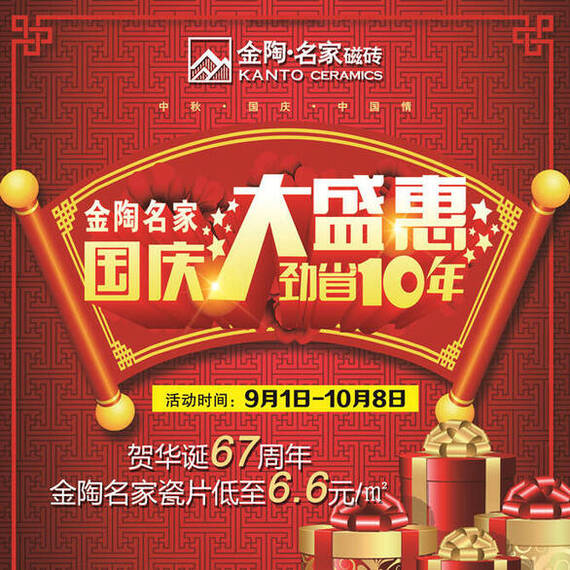 9月1日—10月8日,金陶名家诚意推出以“国庆大盛惠,劲省10年”为主题的全国促销庆典。