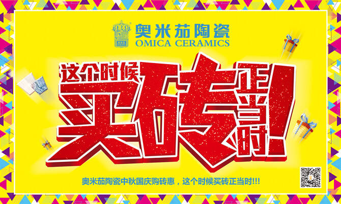奥米茄陶瓷于9月24日—10月9日在全国开展以“这个时候,买砖正当时”为主题的大型中秋国庆特惠活动,以此引爆旺季销售,再次成为陶瓷市场的一大焦点。