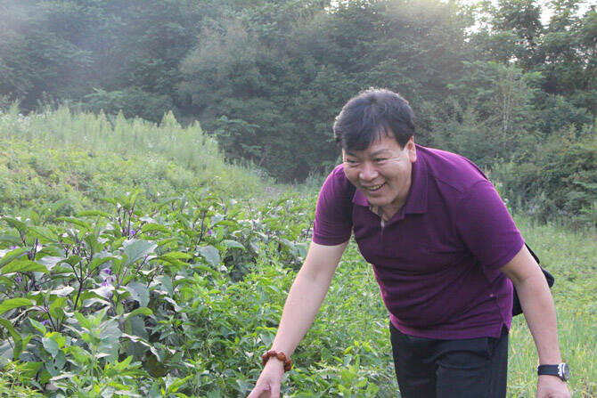 王晓光在山里的农家摘菜