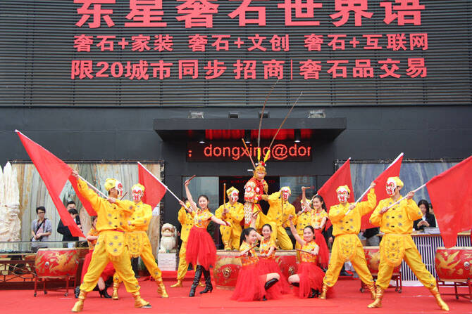 华夏陶瓷网讯(首席记者 申志) 3月6日上午,随着第16届厦门国际石材展正式开馆,在会展中心主广场上,一群“猴哥”挥舞着金箍棒,引领着来宾进入了连续五年以800平方米唯一户外独立展厅呈现各类“宝贝”的东星奢石馆。