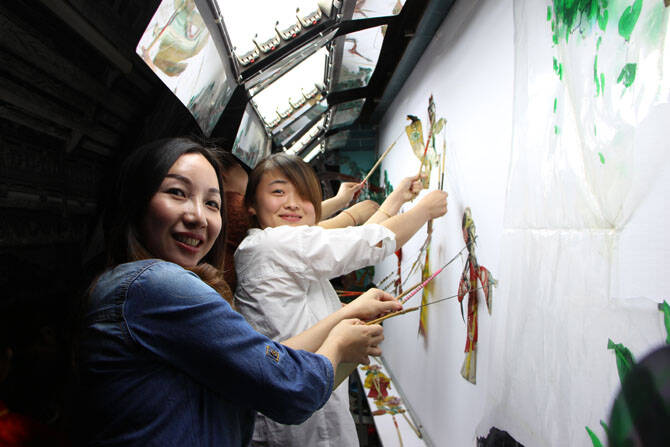 陶企代表体验皮影戏表演