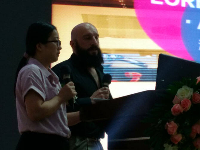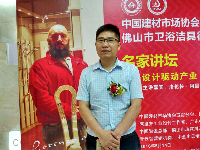 5月14日下午14时许,以“设计驱动产业 原创赢得未来”为主题的卫浴名家讲坛二期在中国陶瓷总部三楼会议室举行,主办方中国建材市场协会卫浴分会、佛山市卫浴洁具行业协会请来了意大利知名工业设计师洛伦佐·阿里齐,为中国卫浴界人士介绍意大利同行的心得,吸引了100多名相关人士参加。
