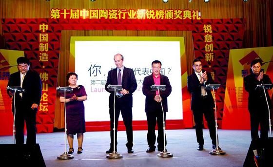 此次新锐榜颁奖典礼亦正式启动了第二届中国意大利陶瓷设计大奖,主办方意大利对外贸易委员会(ICE)广州办事处首席代表保罗·考特洛奇(Paolo Quat-trocchi)及陶城报社管委会主任、总经理李新良,嘉宾中国陶瓷工业协会常务副理事长傅维杰,中国建筑卫生陶瓷协会副秘书长、华南理工大学副教授尹虹,佛山市贝恩特先锋陶瓷机械有限公司总经理路易(Luigi Cormaci)以及淄博金狮王陶瓷科技有限公司(以下简称“淄博金狮王”)总经理袁东峰参加了启动仪式。