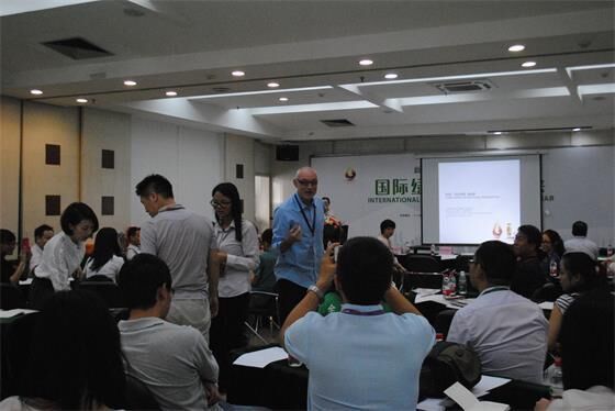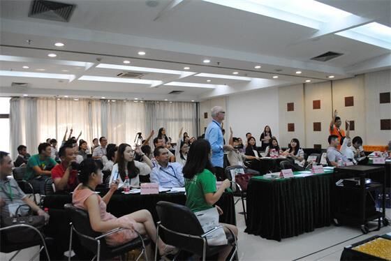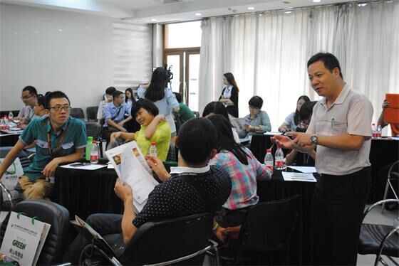 巴瑞·威尔逊别开生面地用小组讨论、竞答问题的方式进行了“碳足迹、产品生命周期能量体”的主题研讨。现场嘉宾被分成了8个6-7人小组进行讨论,“狡猾”的巴瑞·威尔逊还随机调整了部分嘉宾的座位。现场犹如欢乐的大学课堂,他用看图写名称、判断题、选择题、实物答题和排序等游戏形式生动地加深了嘉宾们对碳足迹、产品生命周期能量体等绿色建材相关概念知识。嘉宾们在巴瑞·威尔逊的带动下投入到游戏中,积极而热烈地讨论、认真算分、为小组的成果而喝彩,在轻松愉快的气氛中收获了知识。巴瑞·威尔逊在研讨的最后表示“希望大家通过这个方式能够交到朋友、学到一点点有关绿色建材的知识和能够增加大家对市面上标榜的‘绿色产品’的思考。”