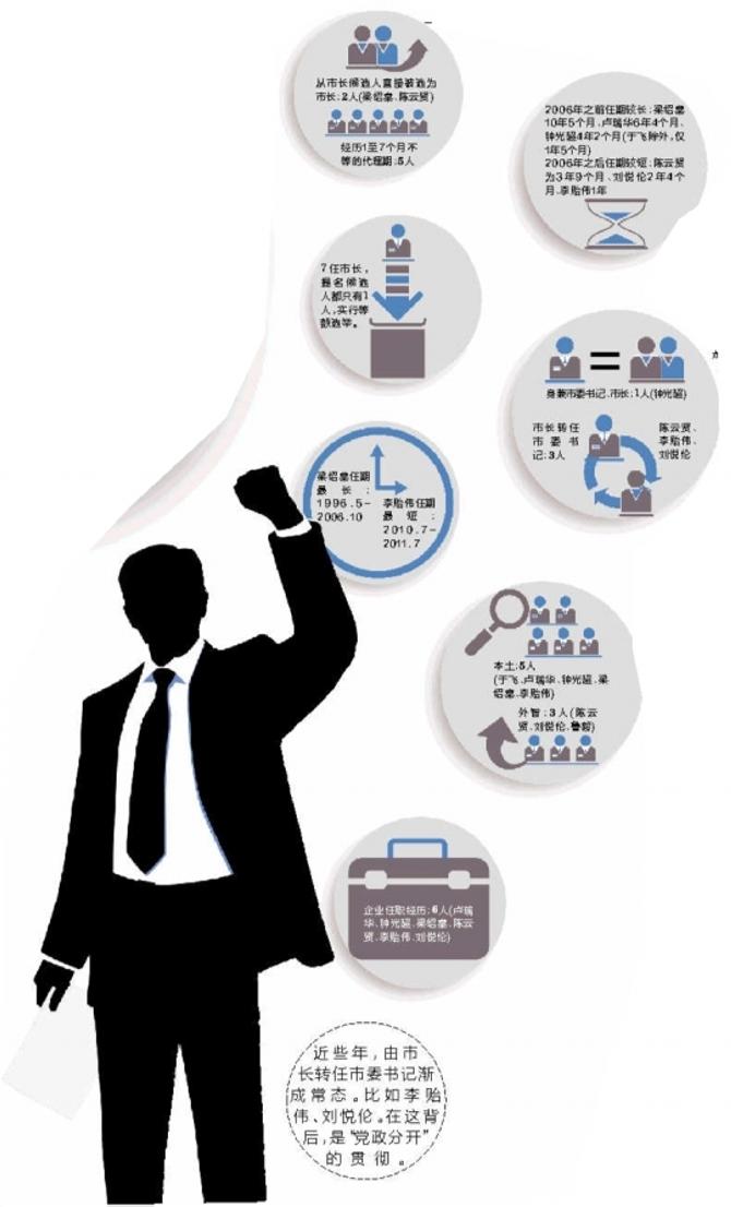 与此同时,一个特别的现象是,近些年,由市长转任市委书记渐成常态。比如李贻伟、刘悦伦。